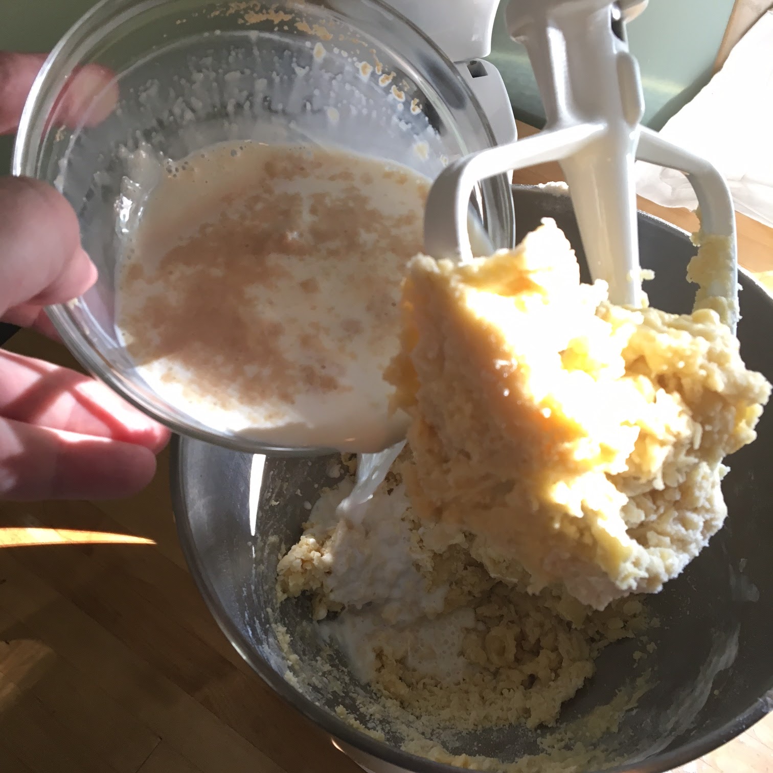 In the meantime, I'd melted butter and added that to egg and sugar and sour cream in the mixer.